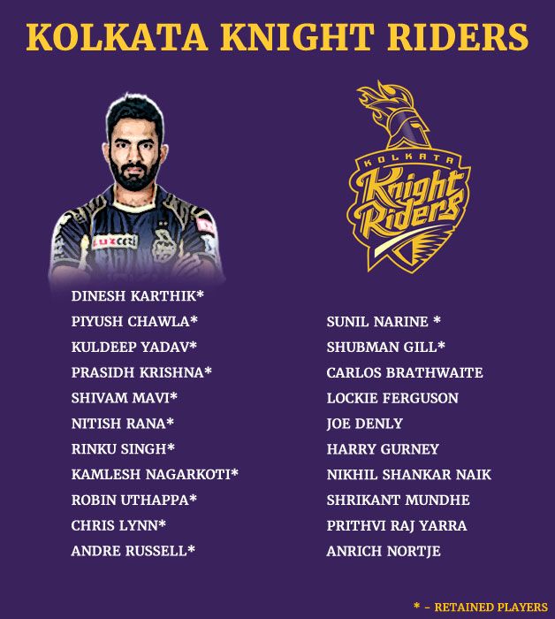 KKR are always a unique setup, has their own set of fanbase,has some loyal players for them with the likes of NARINE,RUSSELL,KULDEEP,CHAWLA,LYNN,UTHAPPA and always gives tough competition to the opponents.They are the one team we can never write off. IN 2018 many wondered whom would they will give the captaincy to as there were no obvious captaincy choices but they surprised everybody that they gave to DINESH KARTHIK who also did a very very good job and and marshaled his troops well and finished as the third best team only behind csk and srh. Dinesh Karthik like Dhoni played with a settled group of players throughout the entire season and handled them well especially with some injury prone players like LYNN and RUSSELL. The only problem for them in the last season was a back up all rounder to russell whom they did not have one but they have sorted out that issue this season by getting BRATHWAITE in thier ranks this season. They also bought ANRICH NORTJE south african quick who could crank it up at 150 km/h. HARRY GURNEY another noticeable buy who is a very experienced campaigner popular all around the world and played in the recently concluded BIG BASH for MELBOURNE RENEGADES and finished the season with championship and returned with brilliant figures throughout the league and bowled very well in the death overs. He is very well known for his back of the hand slower ones and accurate yorkers and sharp bumber.