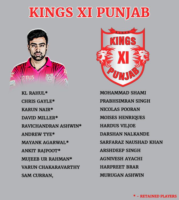 The former one time finalists played an entertaining brand of cricket last season and similar to KKR they did not had an Obvious captaincy option at the start of last season but still they believed in ASHWIN and handed over to him the captaincy and he was a mixed captain, was good at times and made some very good game changing decisions and some of his decisions in the later half of the tournament made many to raise their eyebrows in the end they did not qualify for the playoffs. This season they have bought POORAN, SAM CURRAN and MOISES HENRIQUES to bolster their middle order and late hitting duty because last season barring for RAHUL and gayle (to some extent) rest all batsmen did not perform upto the mark. The other noticeable buy this season is tall lanky fast bowler from South Africa HARDUS VIJOEN who was the highest wicket taker in the recently concluded T10 league. As far as spin department is concerned they have quality spinners like ASHWIN,MUJEEB and MURUGAN ASHWIN and a mystery spinner whom they have bought for huge bucks VARUN CHAKRAVARTHY and in the fast bowling department they have TYE ,SHAMI and ANKIT RAJPOOT. The only area of concern for them is the lack of hard hitting All rounders like Russell,CUTTING in their ranks.