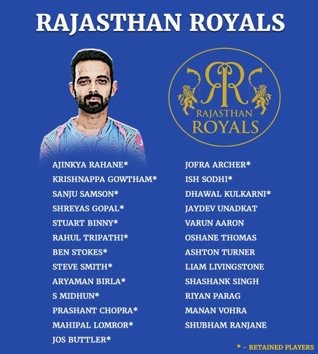 This time they are even more stronger with STEVE SMITH returning and having bought ASHTON TURNER and LIAM LIVINGSTONE in this year’s auction they definitely have the firepower to go all the way through even though they will miss the services of BUTTLER and STOKES in the later half of the IPL they certainly have the backup players with the likes of LIVINGSTONE who is a power hitter just like BUTTLER from England and also provides some useful medium pace bowling option , They have JOFRA ARCHER who will be looking to prove himself again for the one last time so that he will get a spot in England world cup line up. They have bought OSHANE THOMAS from WestIndies who impressed everyone with his fast bowling and sheer pace.The only department which they would be concerned of is their spin bowling which does not have huge names in their ranks but still they have ISH SODHI ,SHREYAS GOPAL, KRISHNAPPA GOWTHAM with whom they can give the opponents a run for their money. STEVE SMITH and ASHTON TURNER will miss the first week of IPL due to their national commitments.